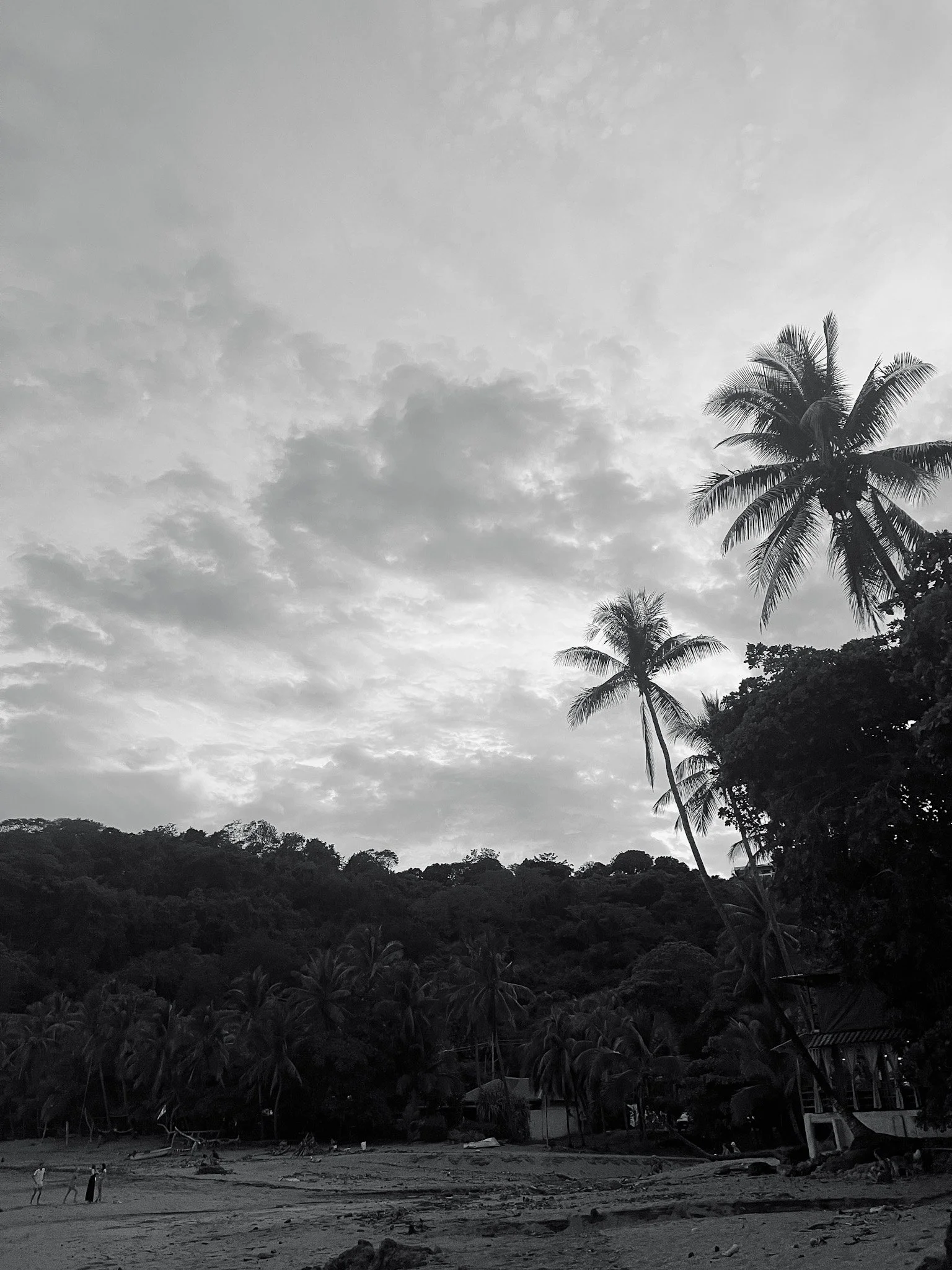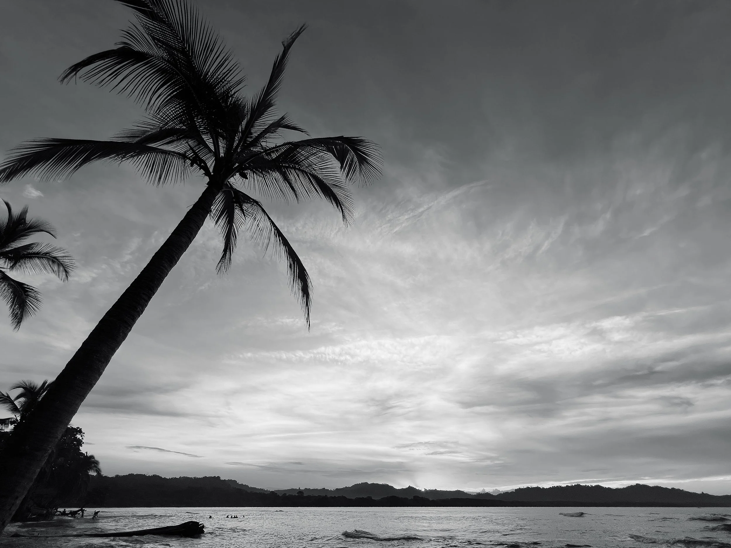 Stormy skies and palm trees on the beach in Nosara.
